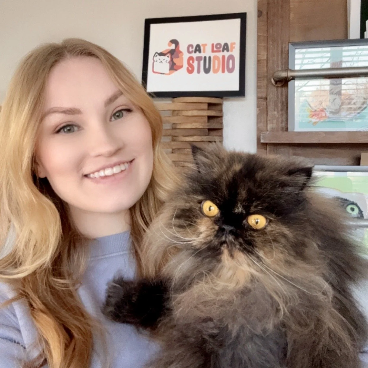 The heart of Cat Loaf Studio lies in capturing the charm and comfort our feline companions bring. Our mission is to bring a touch of cat magic into our everyday lives. Founded by Melanie Jacobs, Cat Loaf Studio transforms everyday kitty antics into delightful artwork and products. Every piece is hand-sketched and brought to life on her iPad with the Procreate app, blending artistry and puns to capture our purring friends. At Cat Loaf Studio, we believe the simplest moments, like a twitch of a whisker or a perfectly formed loaf, hold the magic of pure joy.