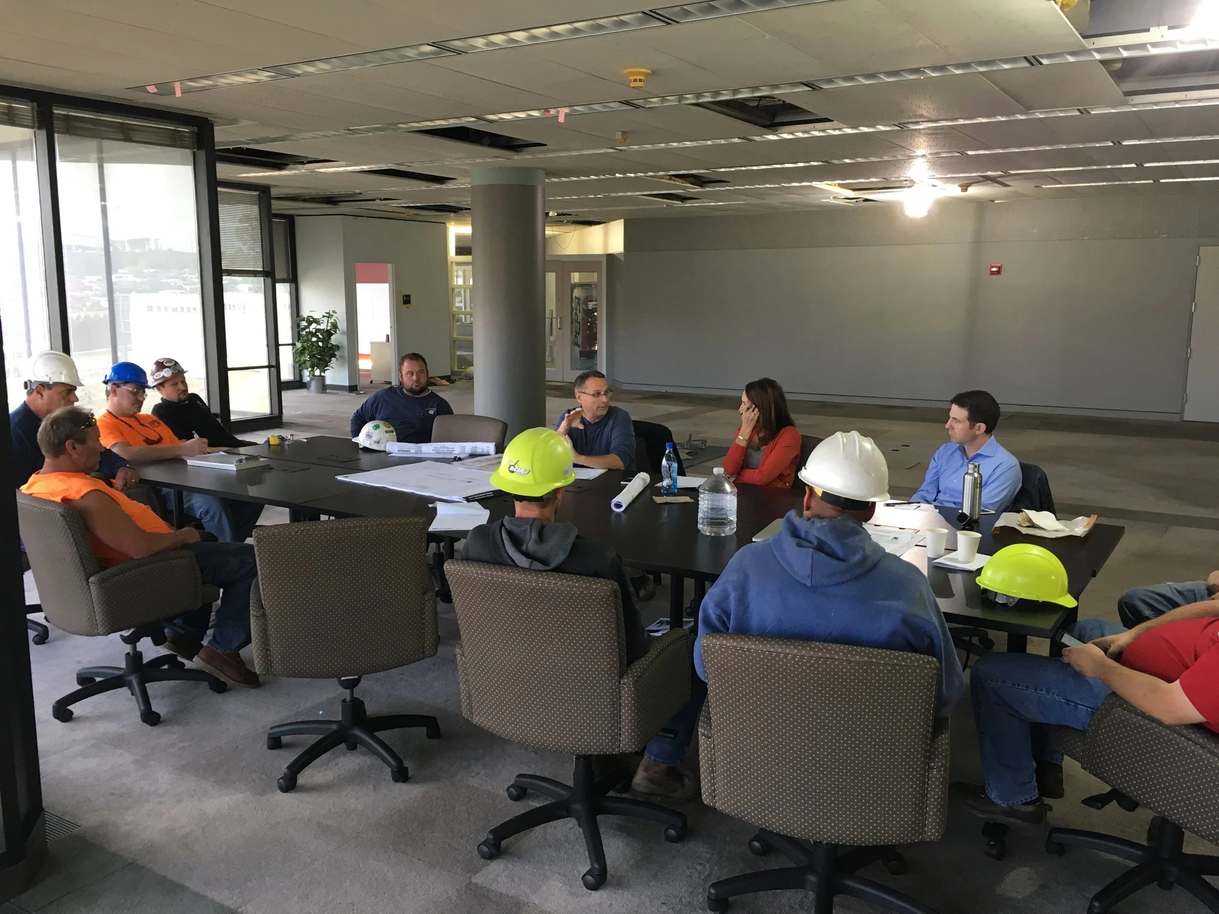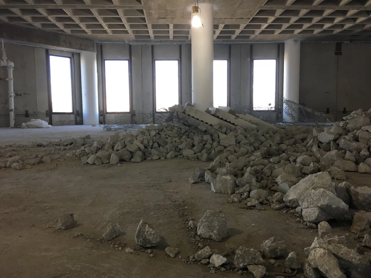 Demolition took nearly entire building back to the precast concrete, curtain-wall shell; 164 new window openings added; 110,000 SF of concrete flooring ground down and burnished; entirely new electrical, plumbing and sprinkler systems installed