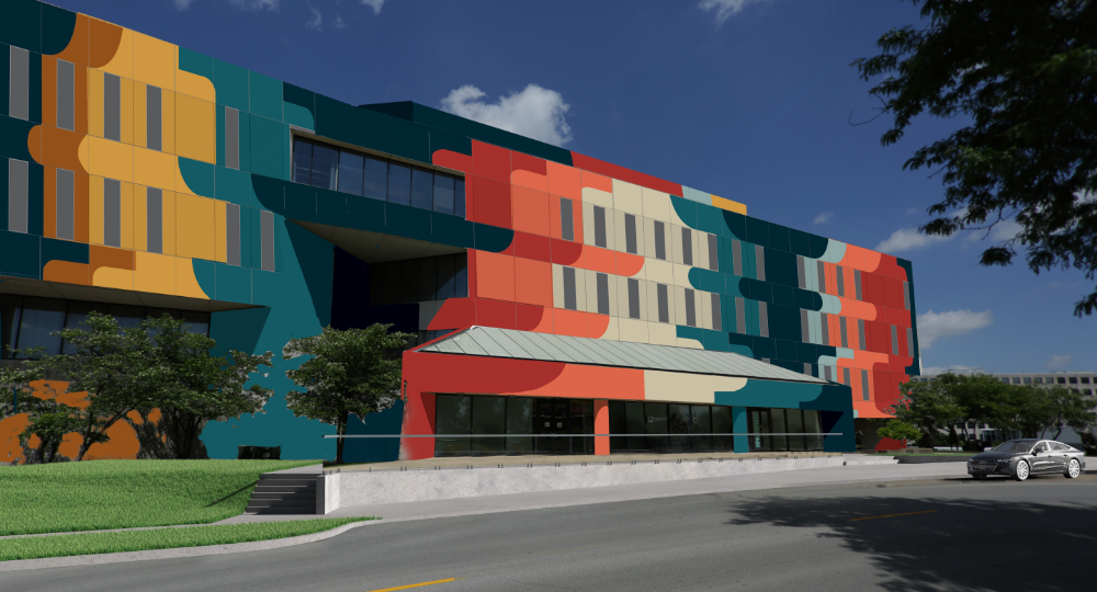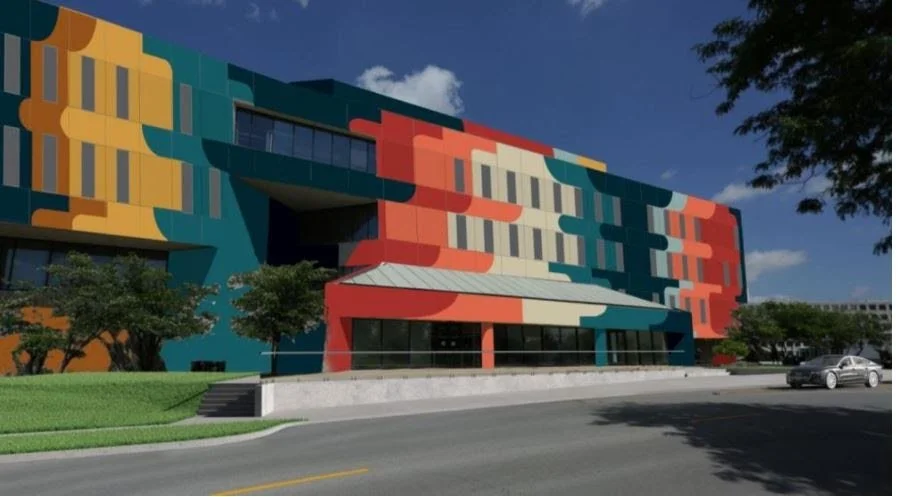 Passersby can see the colorful “Future” mural on the north side of the Evelyn K. Davis Center for Working Families…